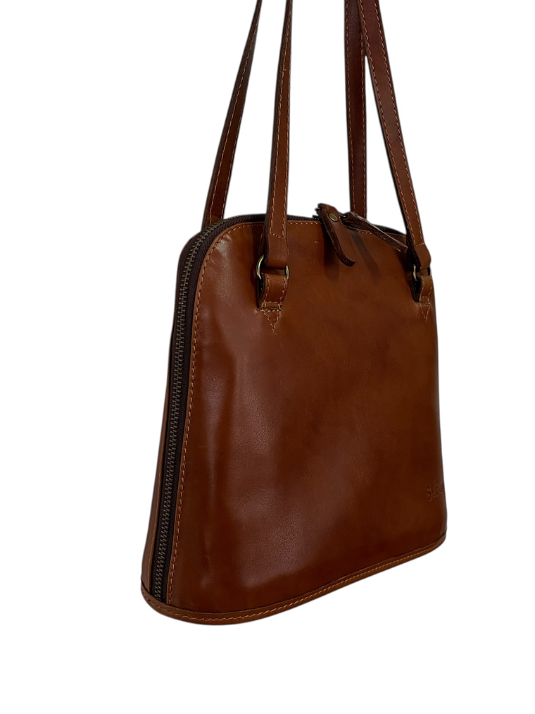 Cartera de Cuero con asa larga de 26 cms. Doble cierre principal que abre la cartera casi completo. Internamente forrada en tela e incluye 1 división interior y 2 bolsillos interiores (uno de cuero y otro con cierre).