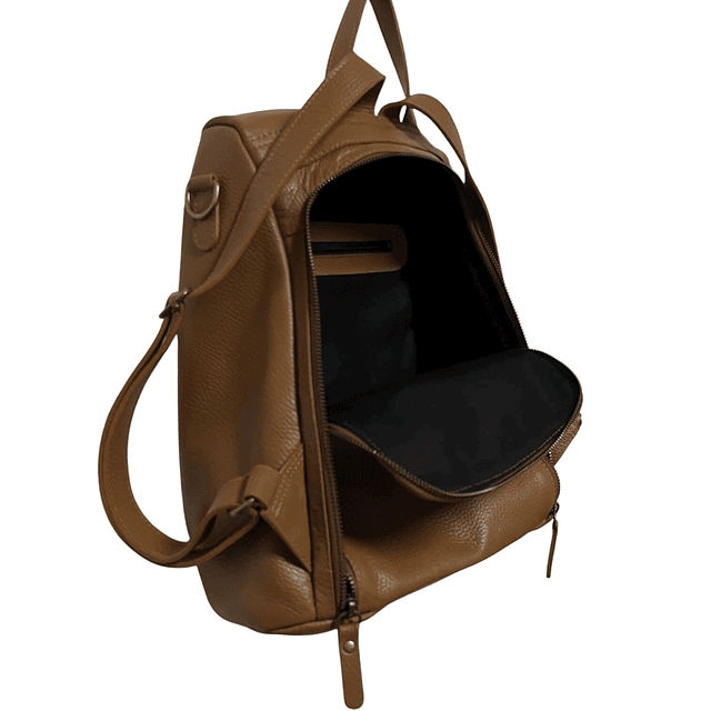 Descubre la Mochila EBBA en cuero natural, diseñada para la mujer moderna y funcional. Segura pues su cierre principal está en su parte posterior. Compacta pero espaciosa, con bolsillos estratégicos para organización y correas ajustables para máxima comodidad. Un complemento perfecto para tu estilo diario